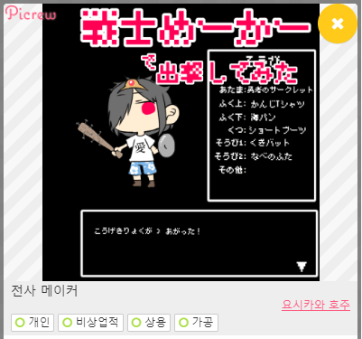 | 애니 픽크루(Picrew) 무료로 상용OK! 동물, 사물 등 캐릭만들기 기타편 (0) | 2020.04.23 |