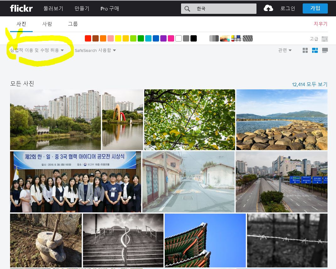 참고로 플리커는 일반인들도 이미지를 저장하기 위해 많이 업로드 되는 사이트입니다. 작가분들은 본인들의 포트폴리오를 위해 올리지만 개인들은 저장 사이트라고 생각하고 올리는 경우가 대부분입니다. 그리고 대부분 고맙게도 상업적 이용이 가능한 상태로 업로드합니다.