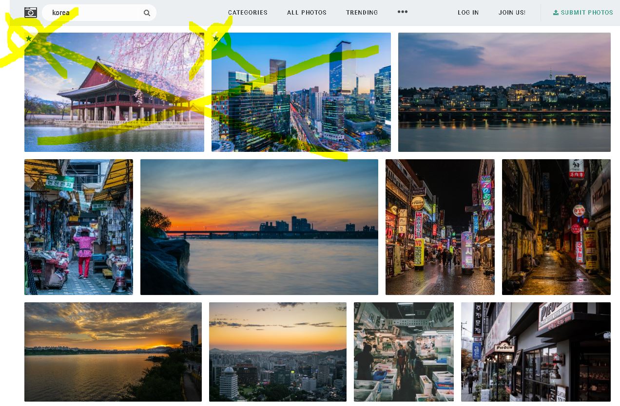 KOREA라고 검색한 픽셀즈는 한국인 정서에 맞는 이미지가 나왔고, 픽사베이에선 그저 아시안을 필터한 것처럼 투영되어 보여집니다. 물론 픽사베이에서도 더 디테일하게 찾아보면 한국인 정서의 이미지가 나오지만 그 퀄리티가 크게 높진 않다고 생각합니다.